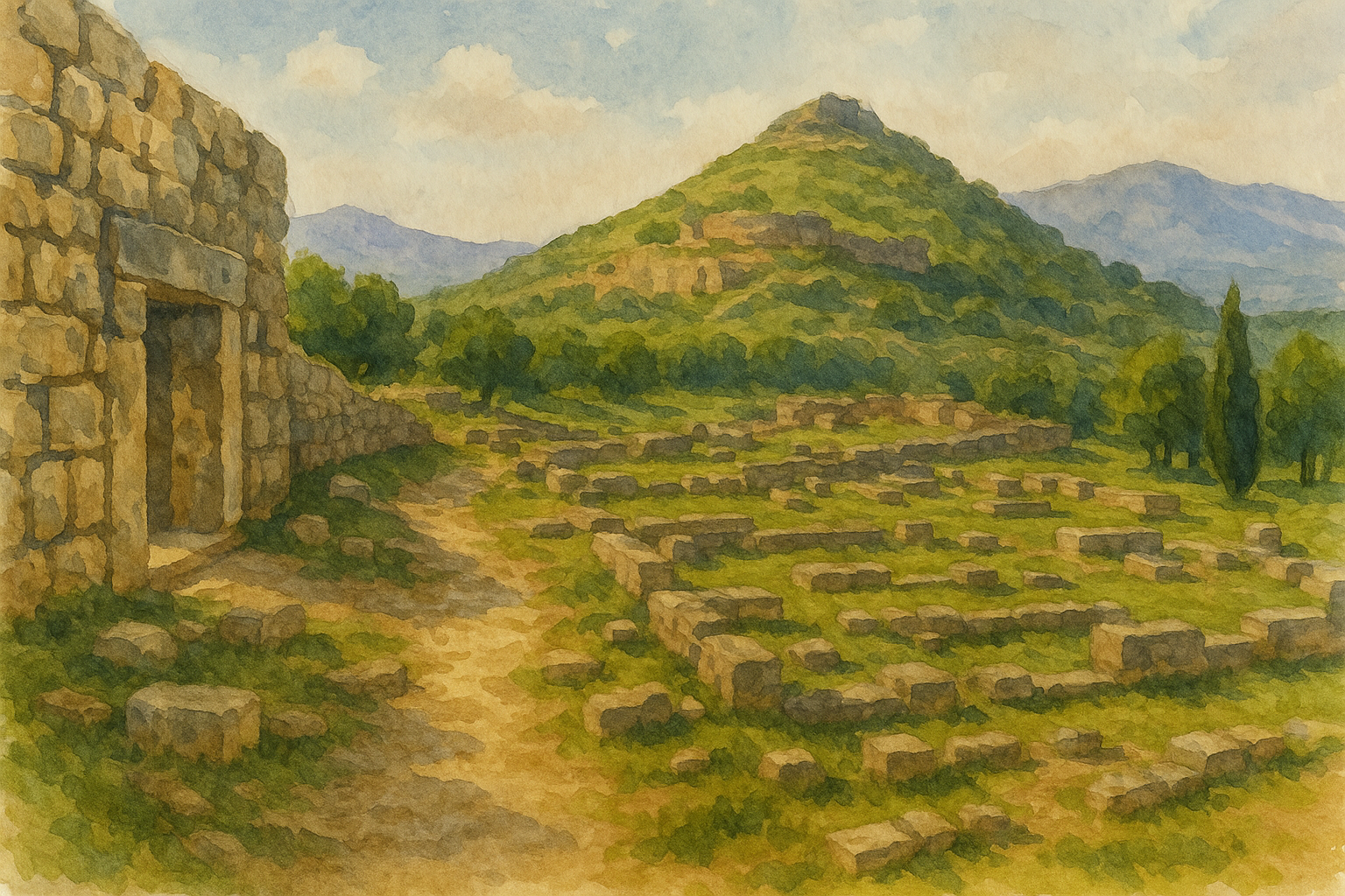 遠い古代の記憶をとどめる遺構が、ペロポネソス半島北東部の風景に静かに溶け込んでいます。およそ20キロの距離を隔てて並ぶふたつの都市遺跡――それぞれが異なる歴史と神話を語りかけてきます。